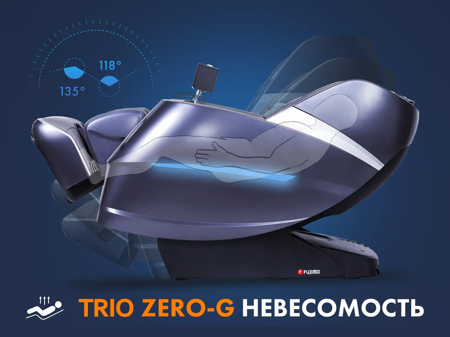 - Технология TRIO ZERO-G с тремя углами наклона (118°, 135°, 162°)